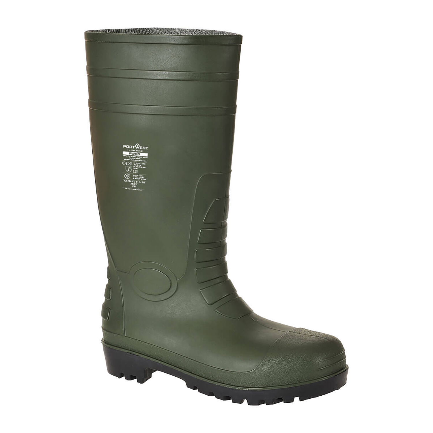 რეზინის ჩექმა მუხლამდე მეტალის დამცავი ცხვირით, სრულად წყალგაუმტარი. ძირი არის ჩხვლეტაშეუღწევადი და ზეთგამძლე.