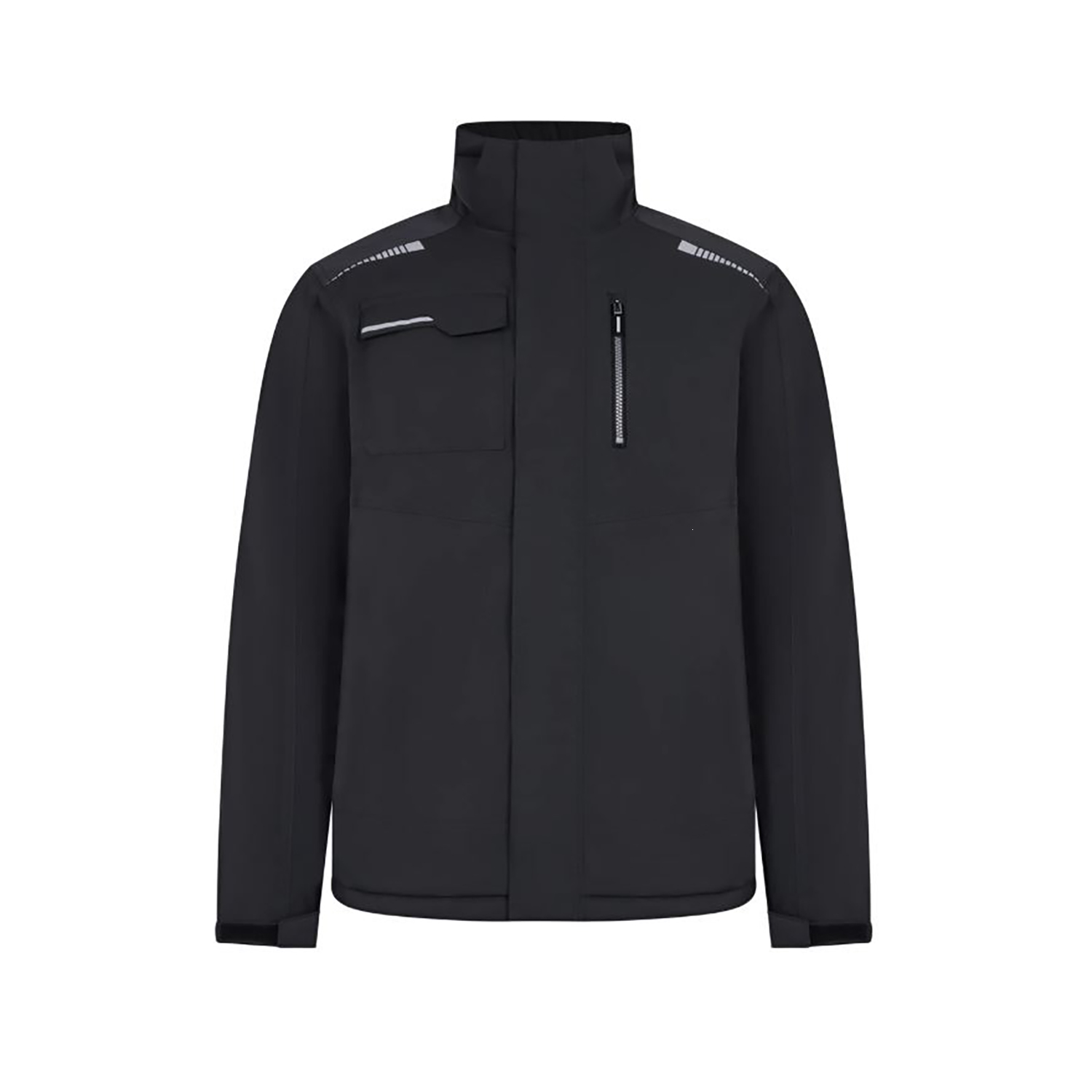 თბილის ქურთუკი ამრეკლი ჩანართებით, იკვრება ელვა შესაკრავით, აქვს საყელოში ჩამაგრებული კაპიუშონი და 5 ჯიბე.