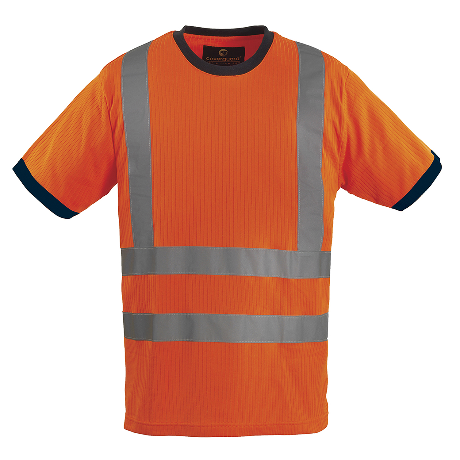 მაღალი ხილვადობის მაისური მოკლე მკლავით, ამრეკლი ლენტებით, დამზადებულია პოლიესტერის და ბამბის ქსოვილისგან.