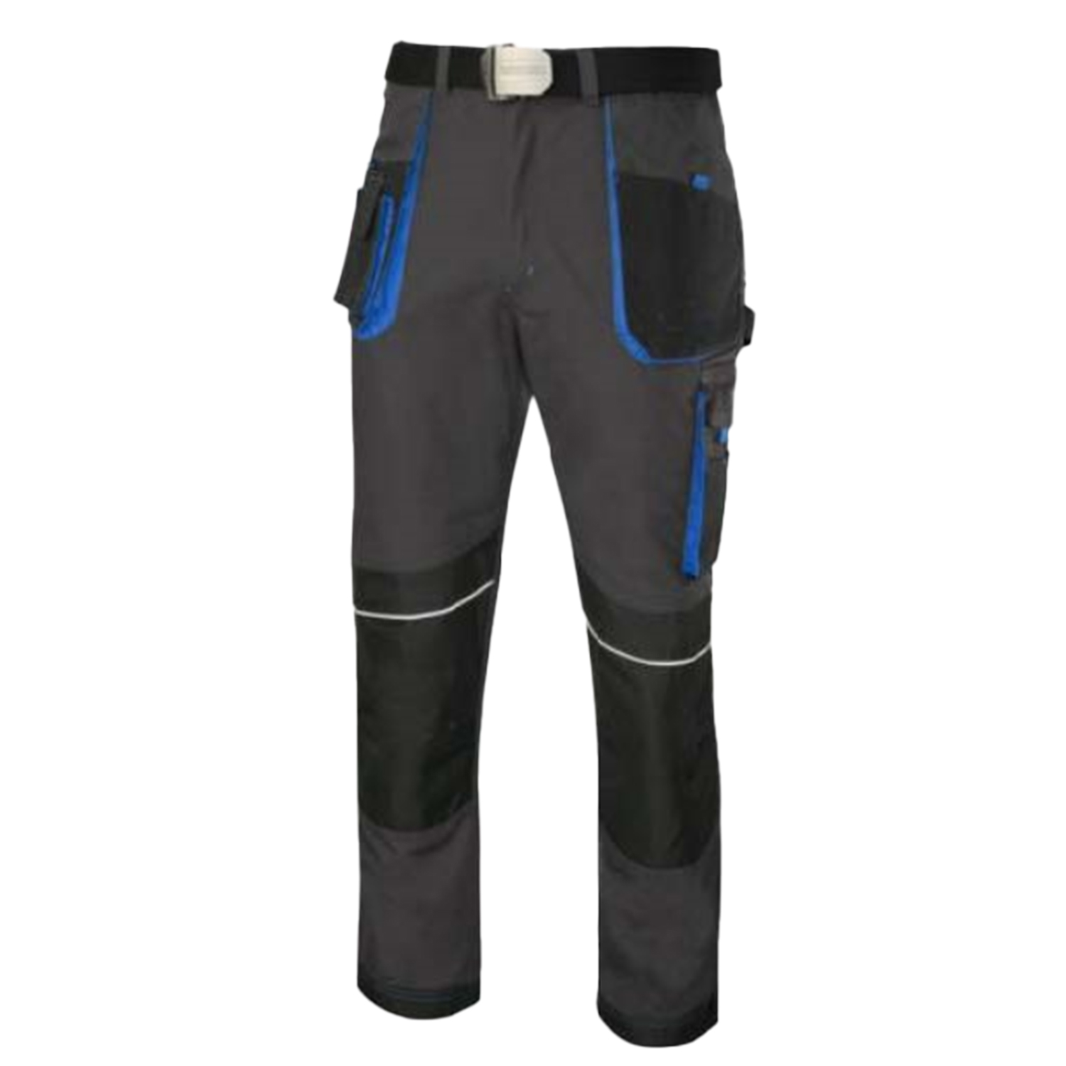სამუშაო ნაცრისფერი შარვალი ლურჯი ჩანართებით