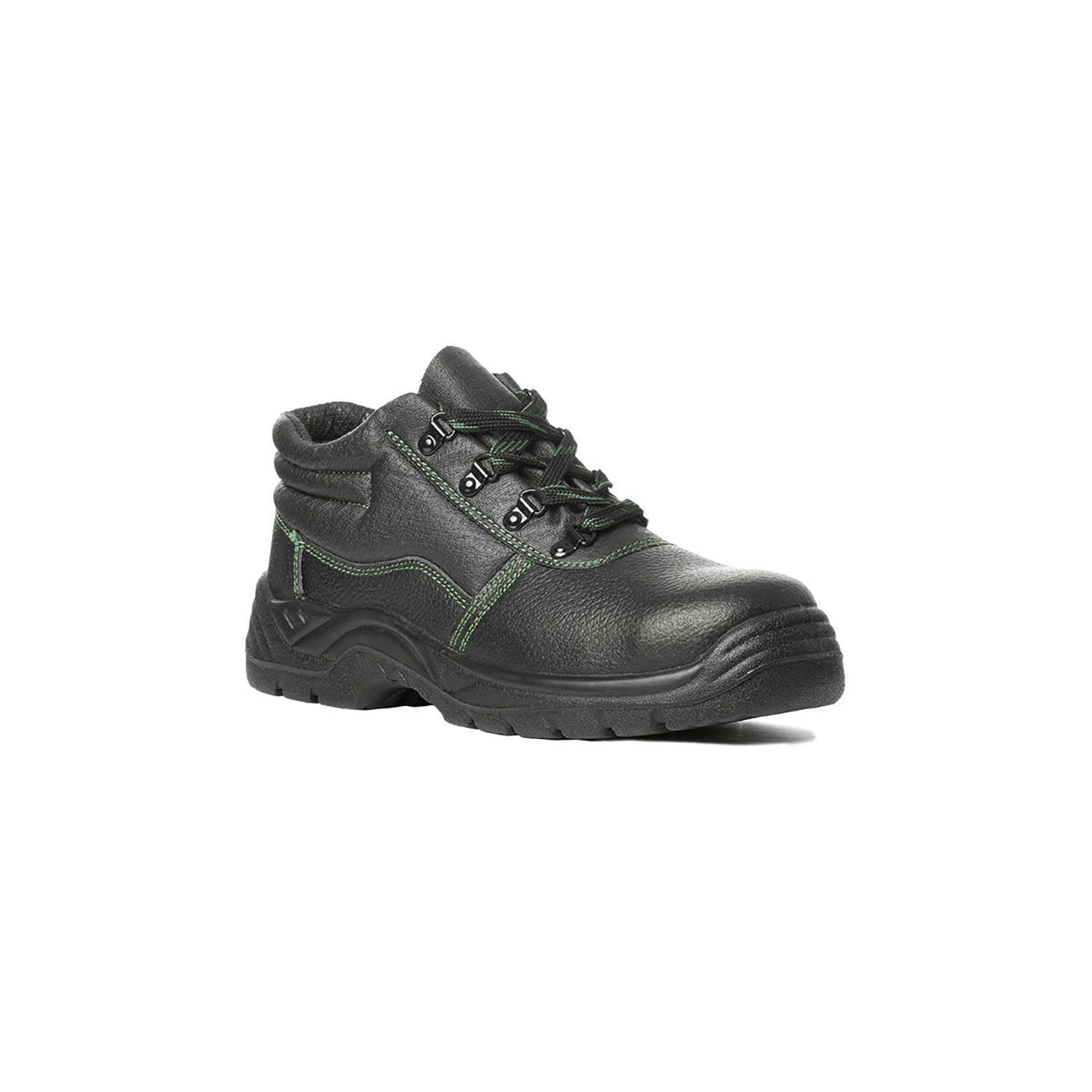 ტყავის მაღალყელიანი ფეხსაცმელი მეტალის დამცავი ცხვირით, ჩხვლეტაშეუღწევადი ძირი, სრიალმედეგი მეტალის და კერამიკის საფარზე, ანტისტატიკური. ენერგიის შთამნთქმელი ქუსლით.