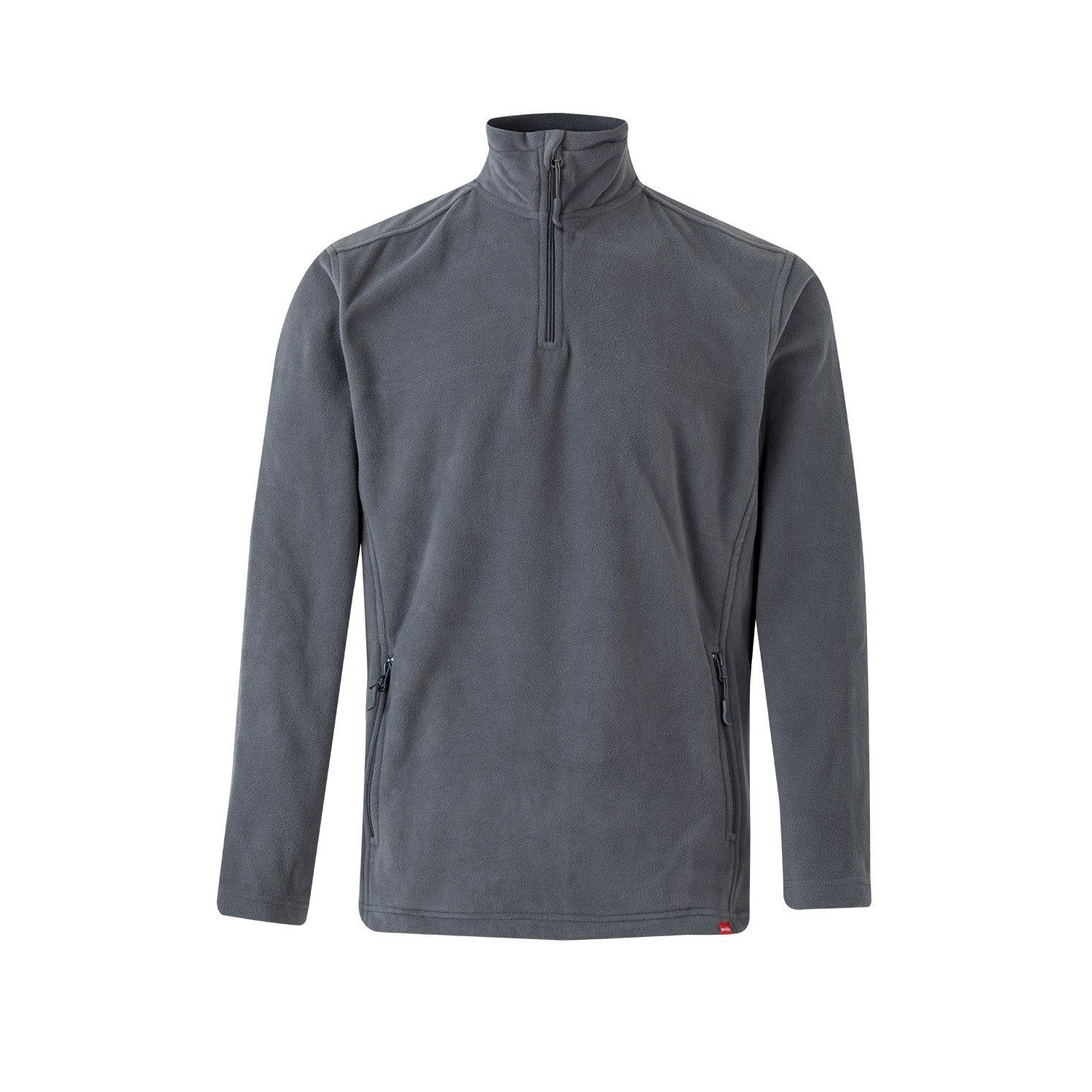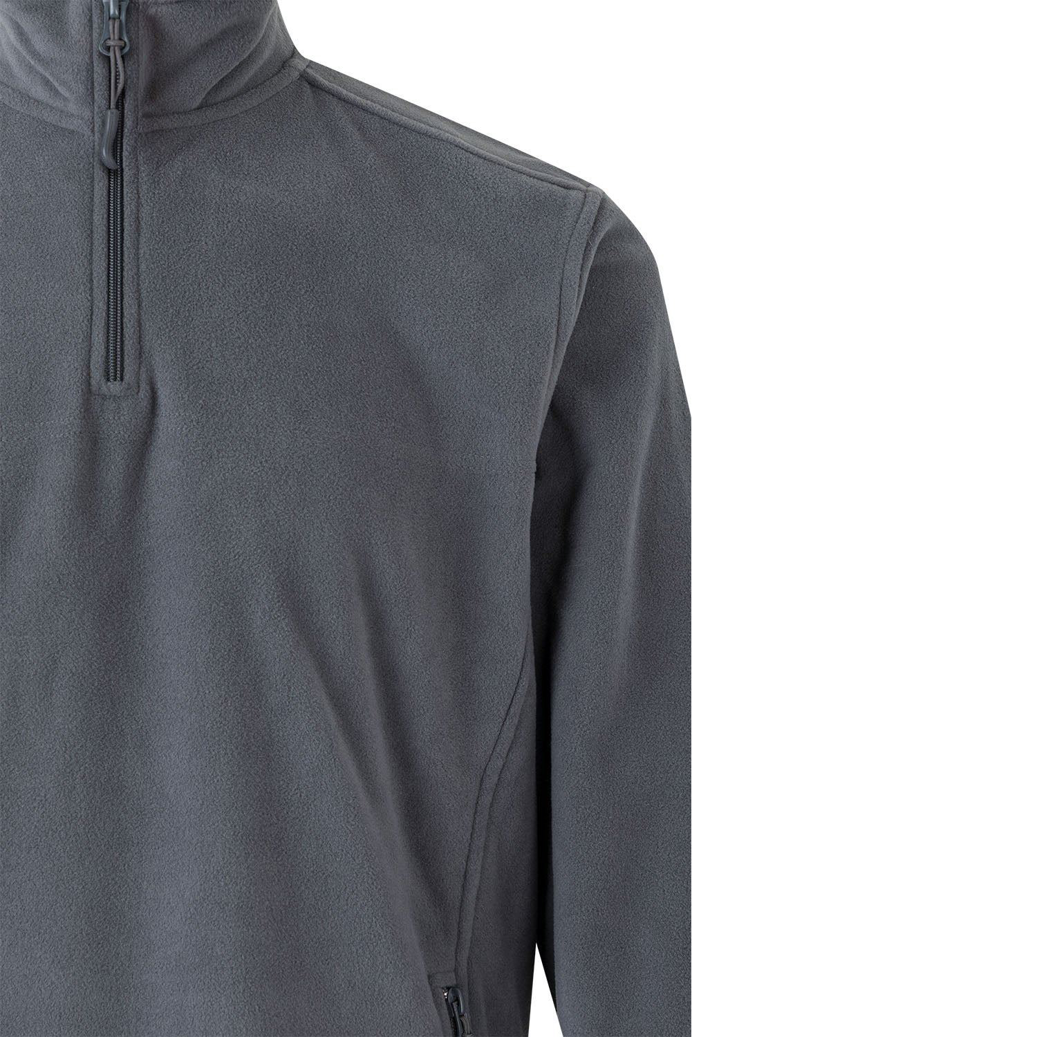 ფლისის სვიტერი ცენტრალური ელვა შესაკრავით ყელთან, ორი გვერდითა ელვა შესაკრავიანი ჯიბით.