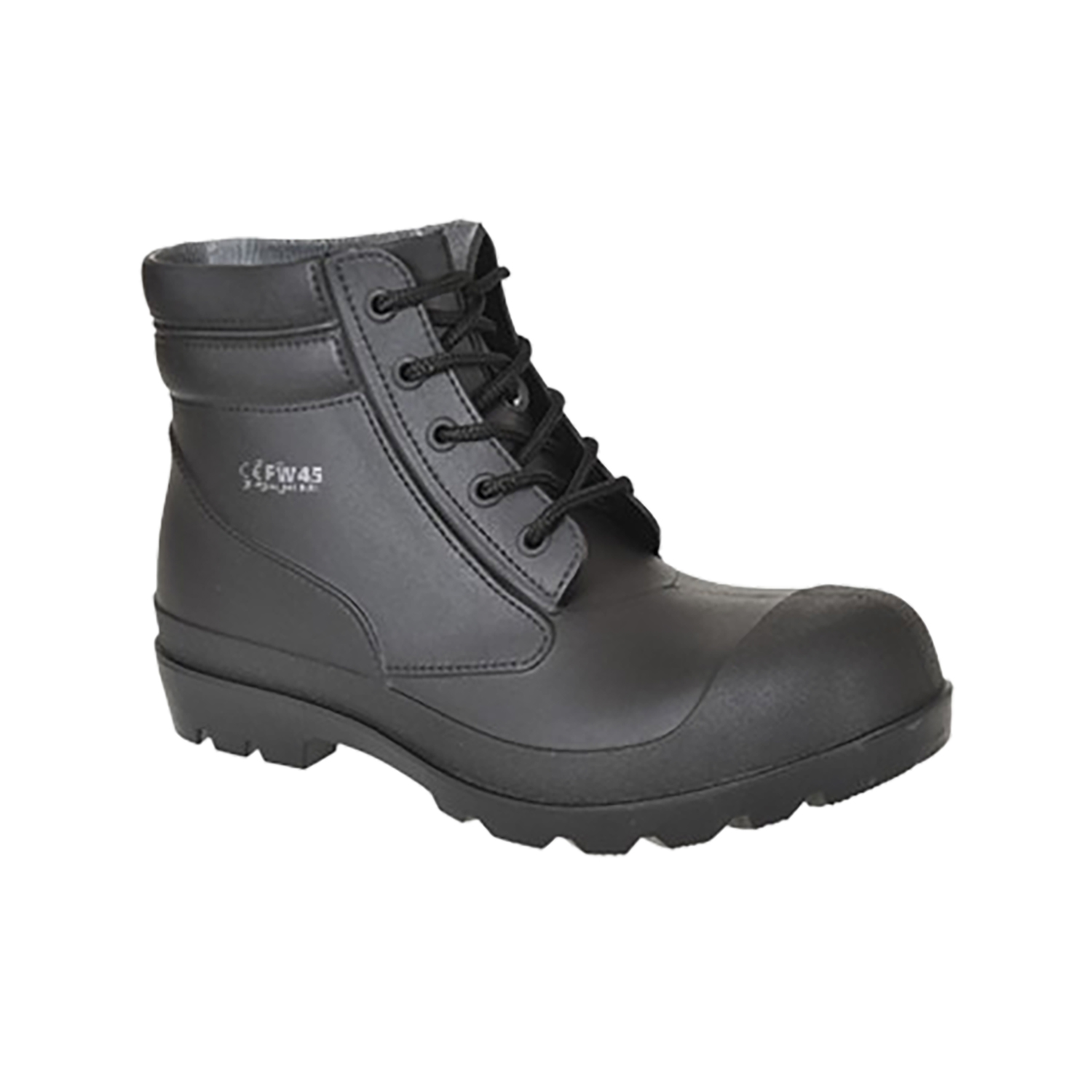 რეზინის მაღაყელიანი ფეხსაცმელი თასმებიანი შესაკრავით, დამცავი ცხვირით. წარმოდგენილია ორ ალტრენატიულ ფერში.